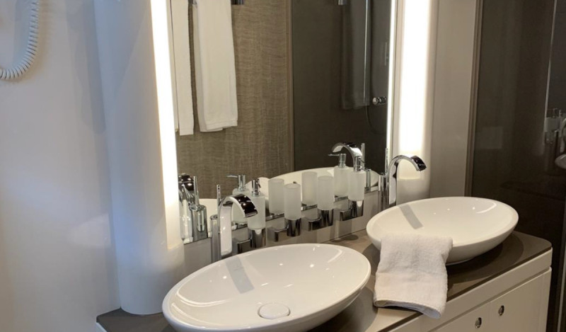 The Elegance 72 features 4 cabins accommodating up to 8 guests. The layout includes a spacious master cabin and three comfortable guest cabins, offering generous living space and high-quality interior finishes.