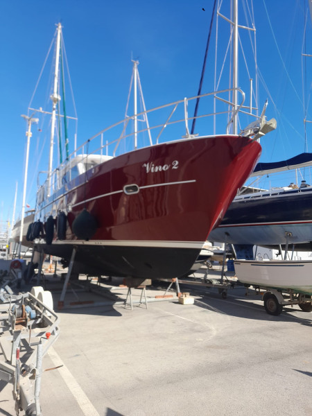Verbrauch: Bei Rumpfgeschwindigkeit (ca. 7 –8 KN) ca. 7 Liter p./Std.