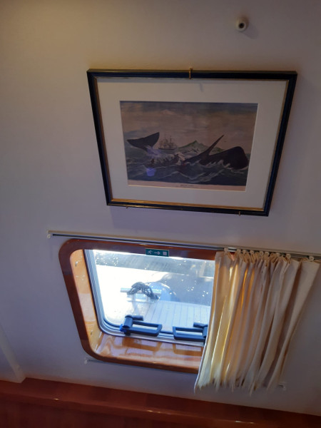 Bugkabine: Doppelbett mit Sessel, Kleiderschrank, Wäscheschränke