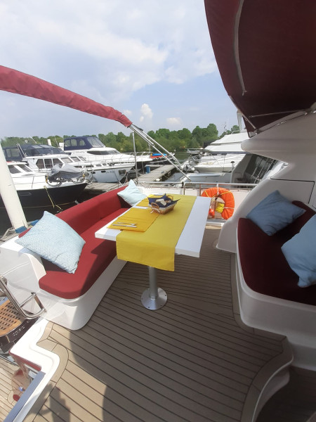 Achterkajüte, Bugkabine, Geräteträger klappbar, Innenfahrstand, Salon, Teak auf Badeplattform, Teak auf Gangborden, Teak auf Vorschiff, Teak im Cockpit, Teak in Kabine