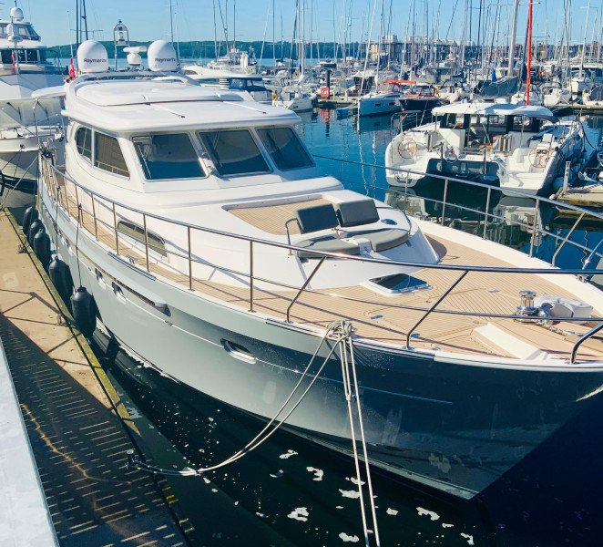 Elling E6 ‘CE Ocean Classification A ’Year of manufacture: 2023 Length: 19.80 m - Width: 5.40 m - Draft: 1.50 m - 3 cabins - 3 toilets/2 showers 5000 liters Diesel - 1200 liters water - 300 liters waste water 1 x Volvo Penta Diesel D13 (1x 1000 HP/large version) approx. 570 hours Additional engine: Volvo Penta D2 (1x 75 HP) approx. 5 hours We guarantee that the boat is in almost new condition, both visually and technically. Equipped with Seakeeper 16 gyro stabilizer, hydraulic bow and stern thrusters, among other features. Together with our colleague in Flensburg, we are the sole supplier worldwide and are available at any time for a viewing and, if you are interested, a test drive. Perfectly equipped, including the following: Stern garage for a Williams 325 Jet Turbo possible, hydraulic anchor winch with a 55 kg stainless steel anchor, 3.5 kW inverter, 7 kW generator, shore power connection, 24V electrical system, Li-ion service batteries, Raymarine plotter, radar, VHF radio, AIS and autopilot, FLIR thermal imaging camera from Raymarine, Seakeeper 16 gyro stabilizer system, yacht controller remote control, hydraulic bow thruster Side Power Duo Prop, hydraulic stern thruster Side Power Duo Prop, hydraulic gangway with a length of 3.5 m, Kabola KB40 water heater in each cabin, Washing machine, washer-dryer, dishwasher, large Miele refrigerator with 151 liters, Miele freezer refrigerator 100 liters, double sink, Corian worktop, 4-burner stove, extractor hood, microwave oven, wine storage room, electric windows, electrically operated sunroof with pneumatic seal, 14kW Li-ion battery Mastervolt system, the charger operates at all voltages from 80 volts to 230 volts, which means it can be charged anywhere in the world, additional generator (110Ah) on the engine, Whisper Power touchscreen display, air conditioning in every cabin, double glazing, escape hatches, fire alarms, 3x TVs, audio system, Blu-ray player, satellite system for TV, Flexiteak completely installed outside, and much more! Owner\\\\\\\'s cabin: king-size bed with bathroom and TV Bow cabin: queen-size bed with private bathroom Side cabin with bunk beds and access to a third toilet with sink and toilet If you are interested, please request further photos and a detailed specification!