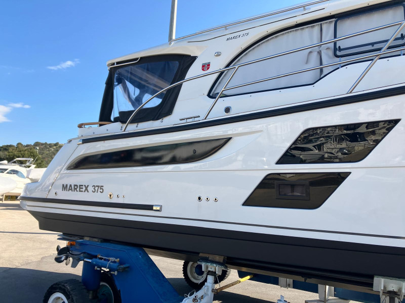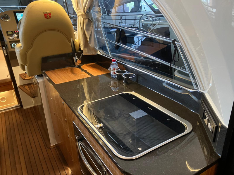 Swimming ladder, Swimming platform, Built-in swimming platform, Bow thruster with remote control, Cockpit cushions, Cockpit table, Deck shower hot/cold, Deck hatch, Pressure washer, Fender, Mooring line, Gangway, Stern shower hot/cold, Stern door to bathing platform, Heating, Air condition, Speaker, Cushions, Radio, Electric/hydraulic trim tabs, TV, TV-antenna, Anti-fouling, Water heater, Boiler, other extras