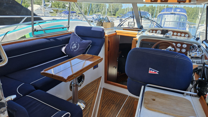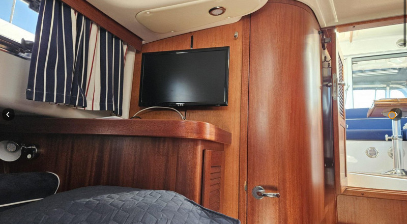 Nimbus 35 Nova Coupé - Year of manufacture: 2006 Length: 11.45 m - Width: 3.35 m - 2 cabins - 1 bathroom with shower 2 x Volvo Penta D4 EVC (2 x 260 HP) with approx. 850 hours! Nimbus 35 Nova Coupé - Year of manufacture: 2006 Length: 11.45 m - Width: 3.35 m - 2 cabins - 1 bathroom with shower 2 x Volvo Penta D4 EVC (2 x 260 HP) with approx. 850 hours! The special features of the Nimbus 35 Nova Coupé are: Enclosed saloon with sliding door, large aft deck, wide gangways with high coaming A brief description of the most important equipment is as follows: Teak on all decks and all floors inside (good condition), electric sunroof, open bow basket with bowsprit, teak steps, folding bow ladder, electric windlass (bow) with stainless steel chain and remote control, electric windlass (stern) with lead anchor band and remote control, large bathing platform with storage space and bathing ladder, electric searchlight, Bow thruster, camper cover, shore power cable, 230 and 12V sockets, induction hob, refrigerator, water heater, hot and cold water with shower inside and outside on the bathing platform, additional seawater mixer in the kitchen sink, holding tank with overboard drain and deck valve for pumping out, 1,500 W inverter, 2x solar panels with controller, complete battery bank, battery charger, Diesel heating with outlet in the saloon, in the cabins and in the cockpit, defroster for the windscreen, hydraulic steering, windscreen wipers, Volvo Penta Power Trim, new Raymarine Axion 9\\\\\\\\\\\\\\\\\\\\\\\\\\\\\\\" GPS plotter with echo sounder, new digital Raymarine radar (integrated), new Raymarine autopilot, VHF radio with AIS, compass, TV LTC in the forward cabin, Pioneer stereo system with speakers in the saloon and cockpit, automatic fire extinguishing system in the engine room, manual fire extinguisher, electric bilge pumps, manual bilge pumps, fenders, mooring lines, boat hooks, flag holders, and much more! The Nimbus is currently still in the water and can be test driven in the coming weeks . If you are interested, please request further photos and a complete specification.