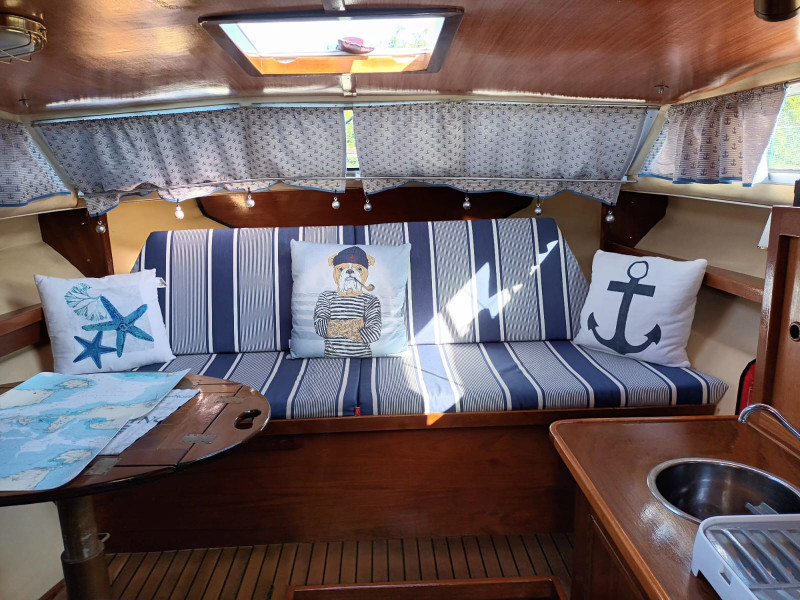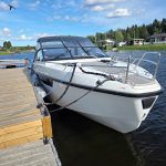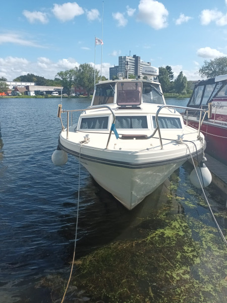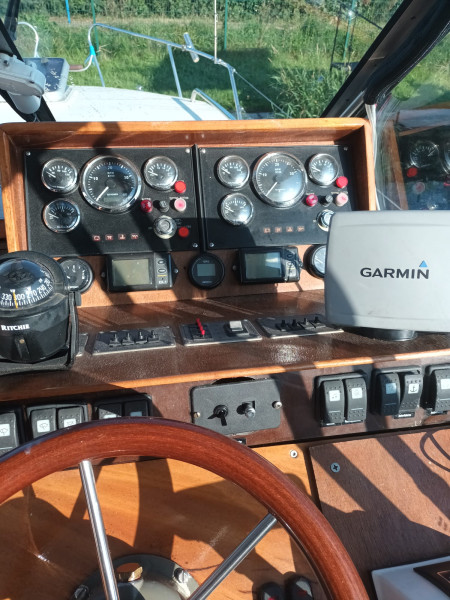 Owner's cabin, interior helm, wooden floor in the cabin and cockpit, cool box, compressor refrigerator, sink, 2-burner spirit stove, 12 and 220V sockets, hand anchor winch with anchor and chain, 220V shore power connection with car charger, several bilge pumps, electric bow lights, FI switch, windscreen wipers with washer system, bathing ladder, bathing platform, davits with dinghy, colour TV with antenna, stern shower, hot air heating, radio, trailer, trim tabs, GPS chart plotter, radar, fish finder, VHF radio, compass, weather fax, weather radio station, bilge alarm, fire extinguisher, lighting, life raft, lifebuoy, life jacket, guard rail, bimini top, underwater paint, winter storage trailer, and much more!!!