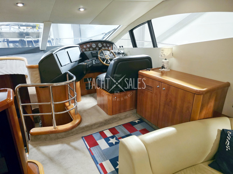Large flybridge with U-sofa with table for 7 people, deck lighting, wet bar with sink with hot & cold water & fridge/freezer (24V), 3-seater captain's sofa & sun deck with sun cushions for 3 people next to the driver's seat